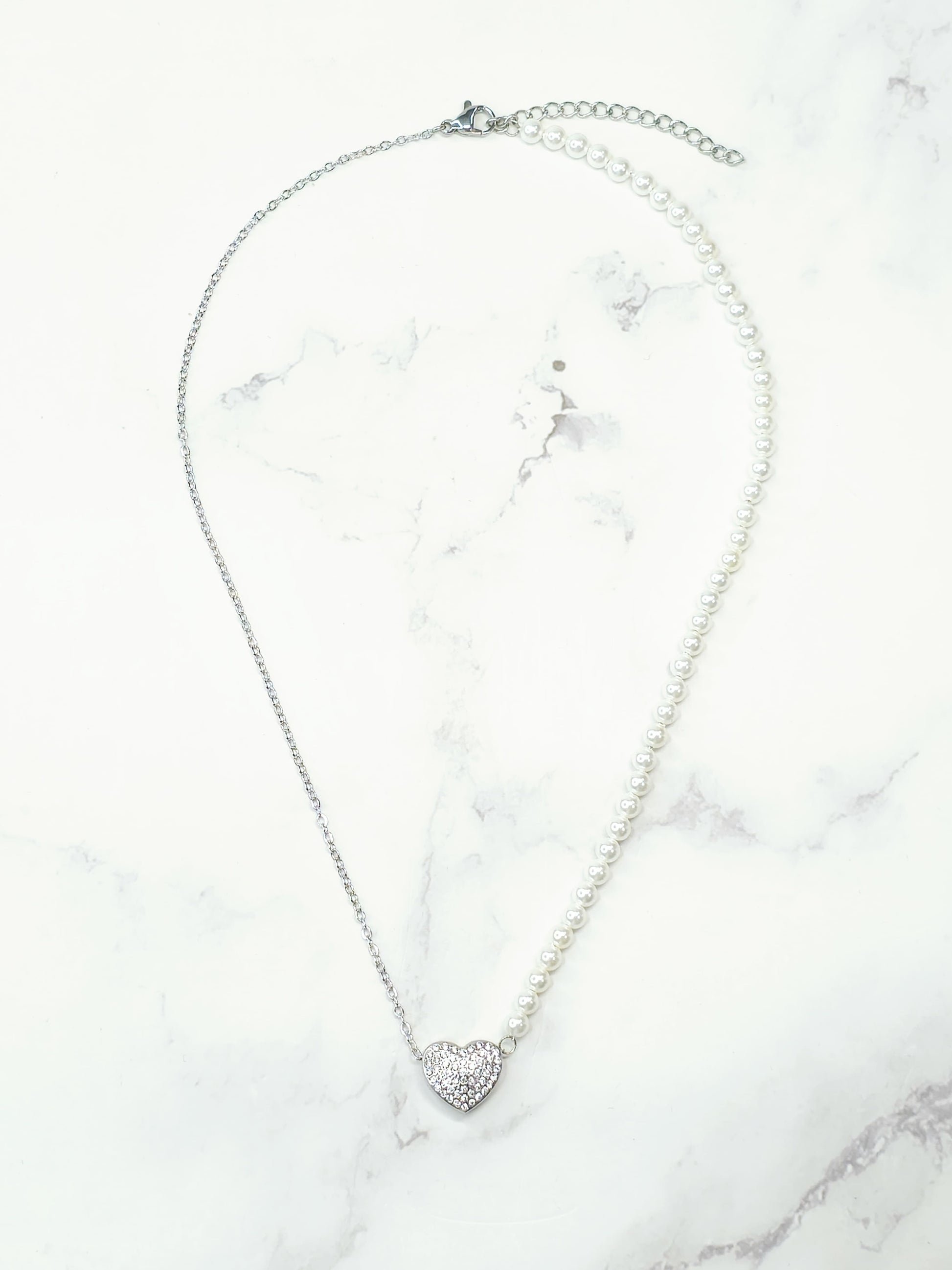 Experimenta la fusión perfecta de elegancia clásica y moderna con nuestro collar único: mitad cadena de acero inoxidable, mitad perlas cultivadas. El dije central, un corazón radiante, está meticulosamente decorado con deslumbrantes incrustaciones de zirconias, agregando un toque de brillo y sofisticación. Este collar es un testimonio de la armonía entre lo tradicional y contemporáneo, ideal para quienes buscan una joya versátil y atemporal.