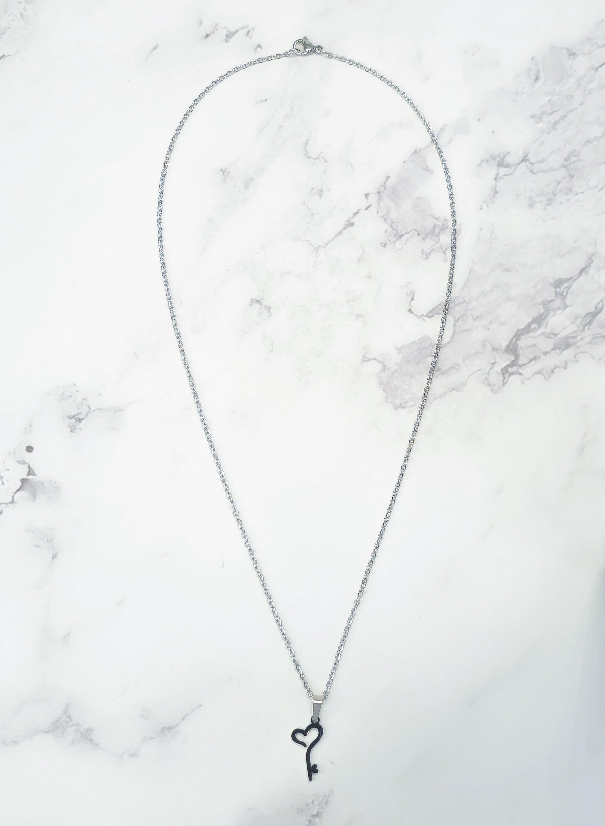 Define tu estilo con nuestra cadena delgada, acentuada por un encantador dije de llave en tono plateado. La empuñadura con la forma de un corazón añade un toque romántico y elegante a esta pieza única. Esta joya es perfecta para quienes buscan un accesorio sutil pero lleno de significado, capturando la esencia de la elegancia y el simbolismo en cada detalle.
