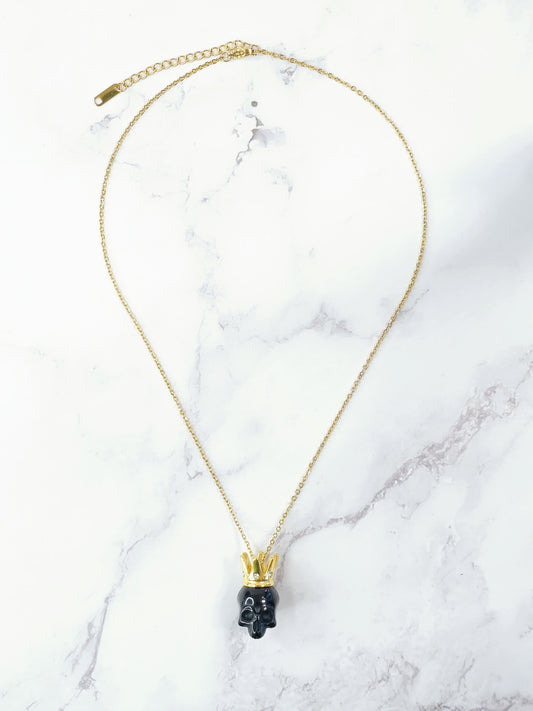 Collar Craneo Negro con Corona - Zirconia